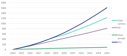 Figure 1: Select drivers of electricity demand growth, 2024-2035 (Terawatt-hours).7